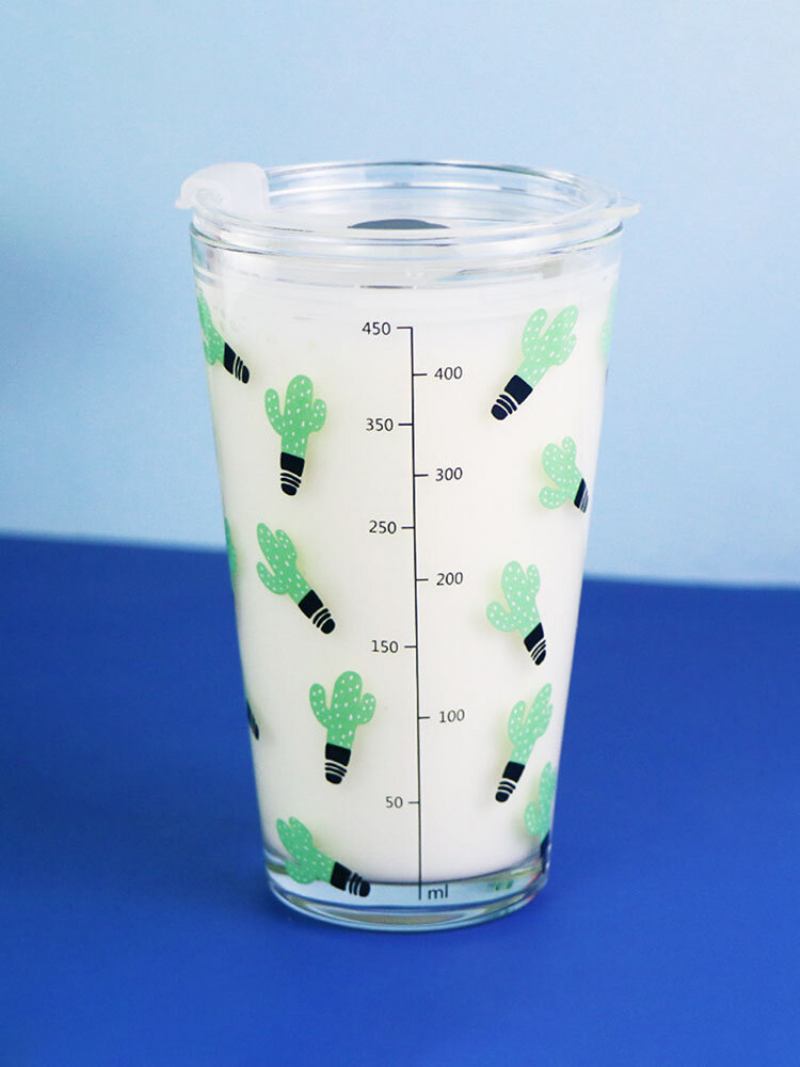1 Τεμ. 450ml Μοτίβο Φυτού Φάλαινας Για Το Σπίτι Διπλής Χρήσης Ψάθινο Καπάκι Ποτήρια Για Φλιτζάνι Νερού Με Ζυγαριά Μέτρησης