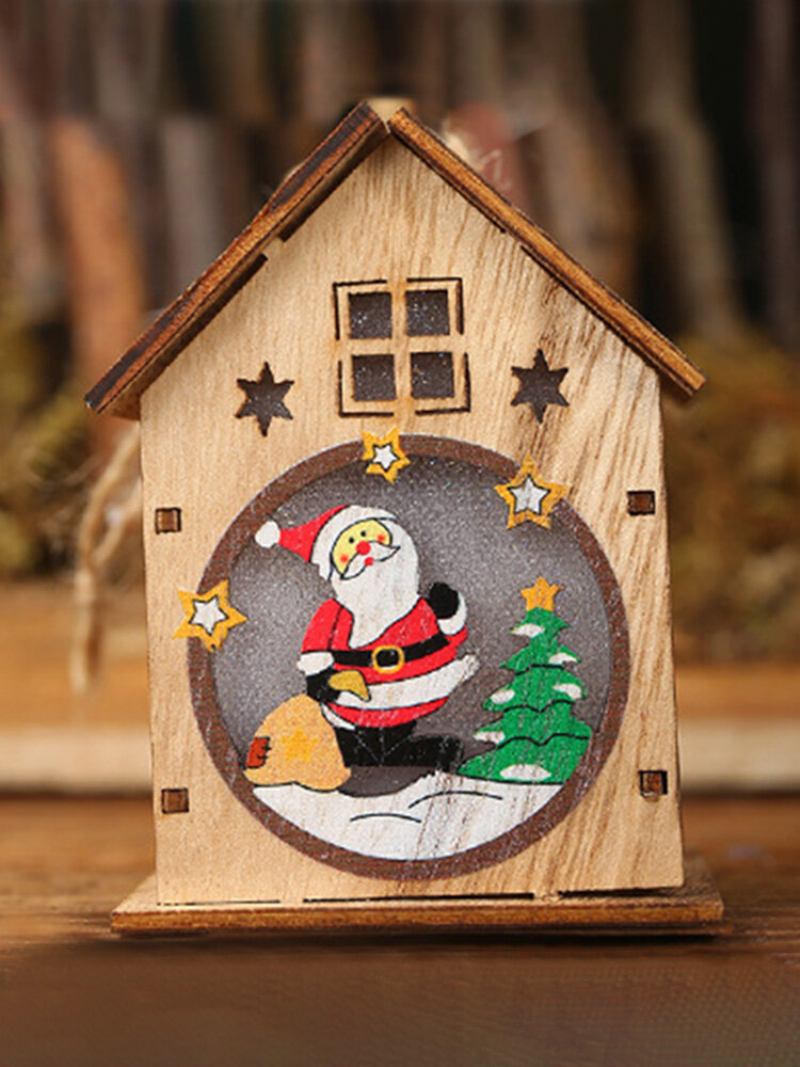 1 Τμχ Χριστουγεννιάτικη Ξύλινη Φωτισμένη Καμπίνα Δημιουργική Συναρμολόγηση Διακόσμηση Μικρού Σπιτιού Φωτεινή Έγχρωμη