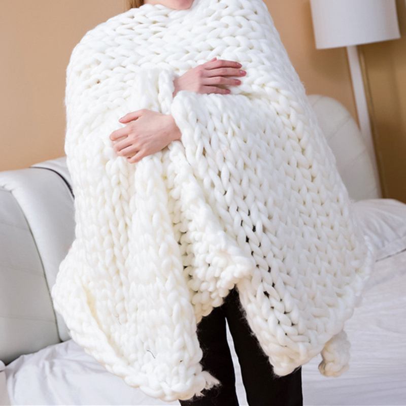 100*120cm Μόδα Χοντρό Μάλλινη Πλεκτή Κουβέρτα Νήμα Μερίνο Μαλλί Ογκώδεις Κουβέρτες Ριχτάρι Πλεκτομηχανές