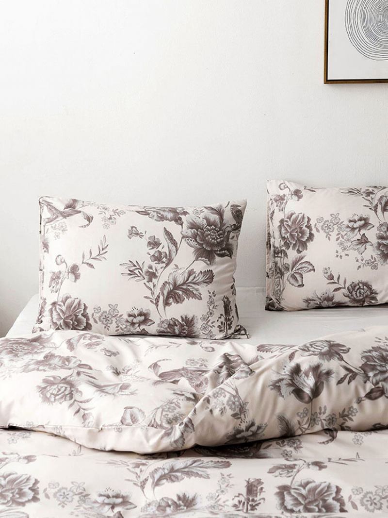 2/3 Τεμ. Floral Overlay Εκτύπωση Άνετο Σετ Κρεβατοκάμαρας Παπλωματοθήκη Μαξιλαροθήκη Με 2 Μονά Κρεβάτια King Size