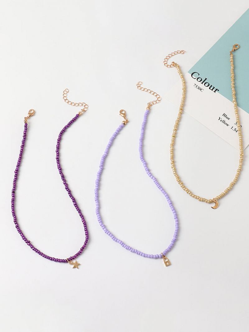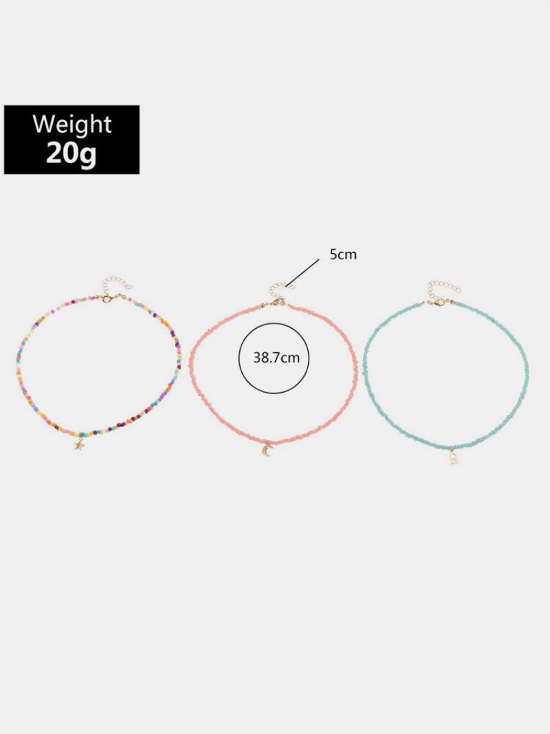 3 Τμχ Σετ Κολιέ Από Κράμα Bohemian Country Style Star Moon Lock Μενταγιόν Πολύχρωμες Χάντρες