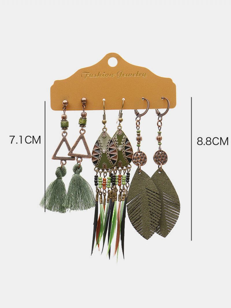 3 Τμχ Vintage Ακανόνιστα Γυναικεία Σκουλαρίκια Σε Σχήμα Σταγόνας Χειροποίητα Υφαντά Με Φούντα