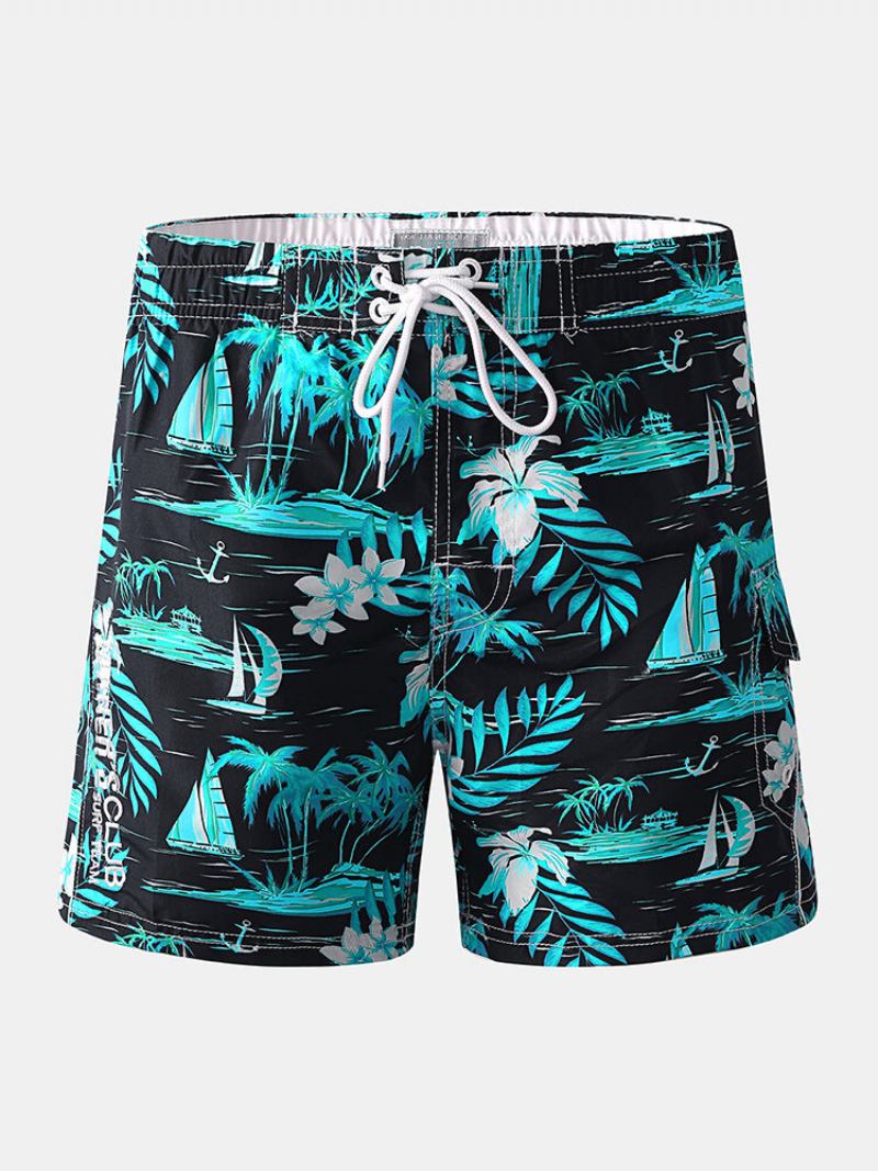 Ανδρικό Κορδόνι Με Φλοράλ Στάμπα Κοντό Μαγιό Με Μαλακό Πλέγμα Με Τσέπη