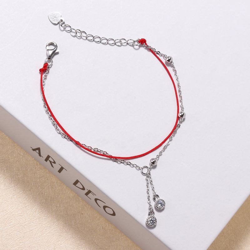 Ασημένιο 925 Κόκκινο Σχοινί Βραχιόλια Γούρι Με Ζιργκόν Αλυσίδας Γυναικεία