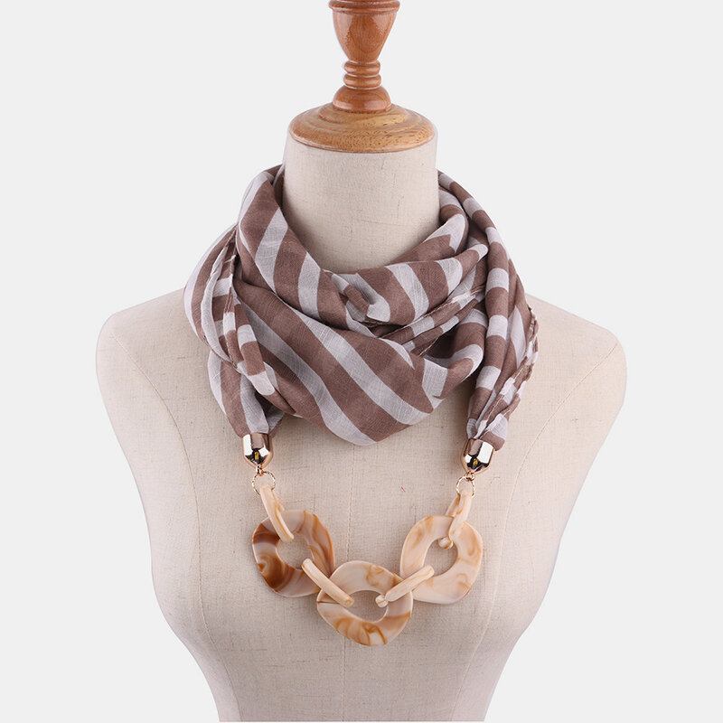Bohemian Printed Slub Βαμβακερό Κολιέ Πολλαπλών Στρώσεων Χειροποίητο Με Σάλι Με Αλυσίδα Από Χάντρες
