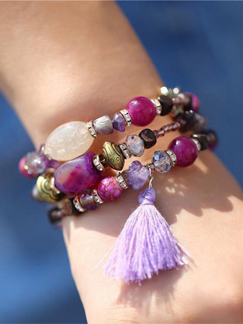 Βραχιόλι Πολλαπλών Στρώσεων Από Κράμα Αχάτη Από Vintage Γεωμετρικό Σχήμα Με Χάντρες Φυσική Πέτρα