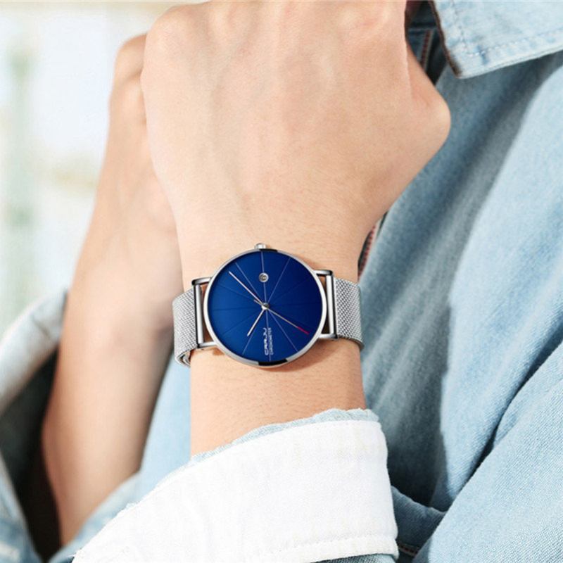 Crrju Unisex Ultra Thin Minimalist Ρολόγια Classic Date Επαγγελματικά Από Πλέγμα Από Ανοξείδωτο Ατσάλι