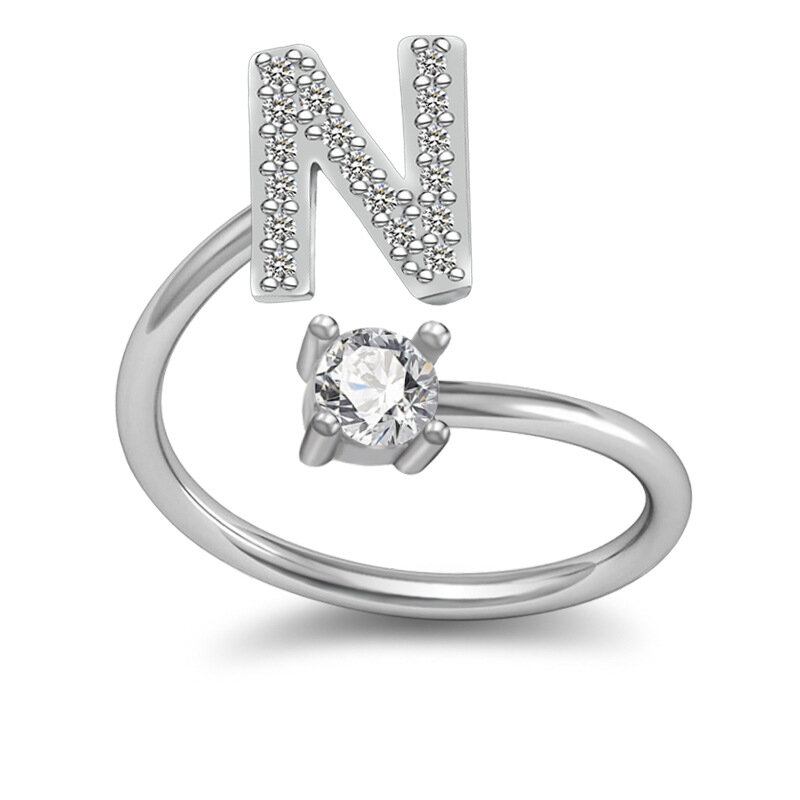 Δαχτυλίδι Αγγλικών 26 Γραμμάτων Επιχάλκινο Από Στρας Από Λευκό Χρυσό Γεωμετρικό Ρυθμιζόμενο