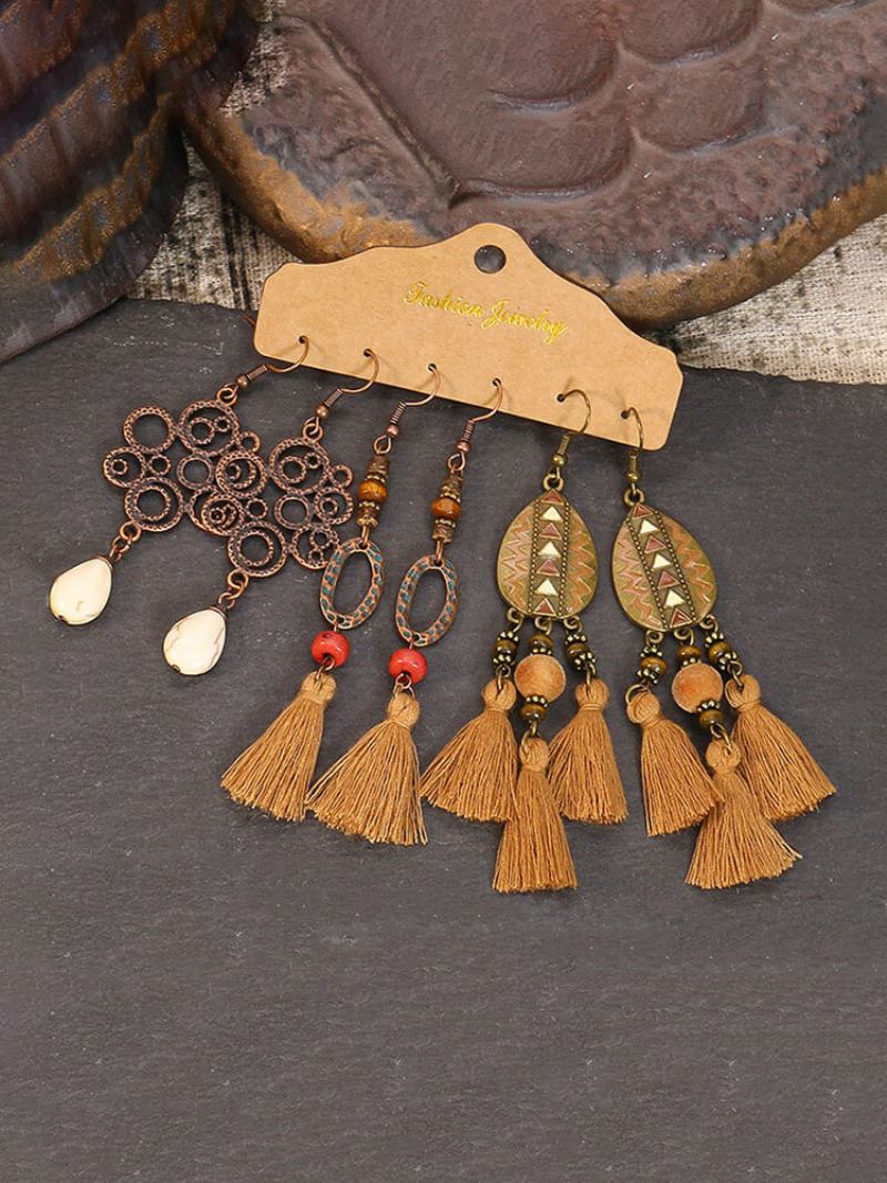 Δώρο 3 Τμχ Γυναικεία Σκουλαρίκια Bohemia Σε Σχήμα Σταγόνας Κρεμαστά Με Φούντα
