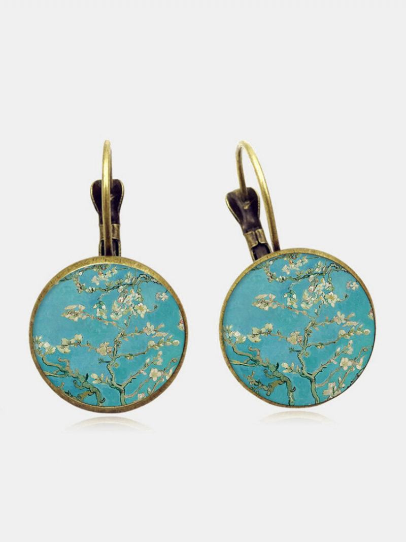 Εκλεκτής Ποιότητας Γεωμετρικά Στρογγυλά Σκουλαρίκια Από Γυαλί Με Μοτίβο Δαμάσκηνου