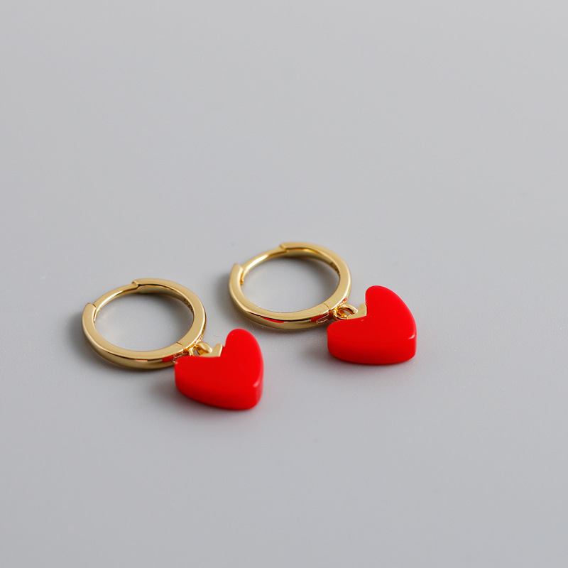 Επιχρυσωμένο Ασήμι 925 Σκουλαρίκια Καρδιά Κρίκος