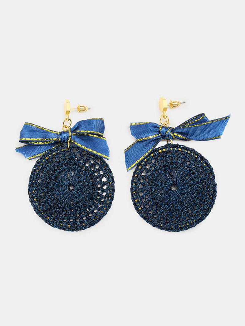 Ethnic Bowknot Στρογγυλό Πιάτο Γούρι Κρεμαστά Σκουλαρίκια Πλεγμένα Vintage Καρφωτά Piercing Για Γυναίκες