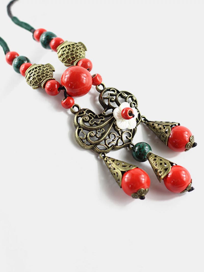 Ethnic Κολιέ Κεραμική Φούντα Χειροποίητη Vintage Κοχύλι Λουλούδι Χάντρες Ψαριού Γούρι Κρεμαστό Αλυσίδα