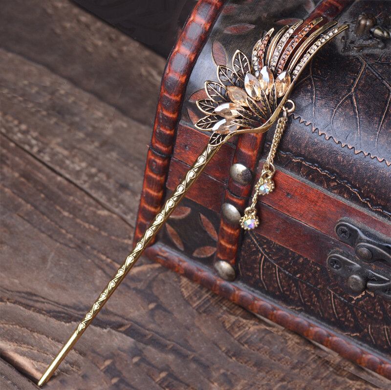 Ethnic Μοναδικά Γυναικεία Αξεσουάρ Μαλλιών Vintage Φτερά Φτερών Στρας Κρυστάλλινη Φουντέζα Με Σταγόνα
