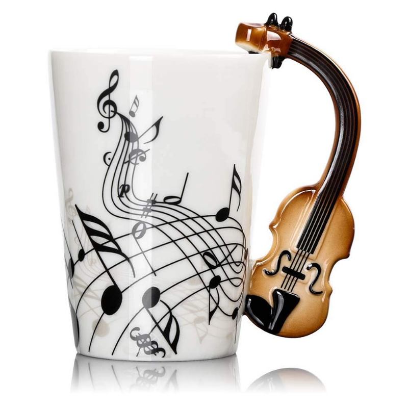 Φοβερή Κούπα Καφέ Με Μοναδική Λαβή Κιθάρας Καταπληκτικό Φλιτζάνι Τσαγιού Από Πορσελάνη Με Νότες Μουσικών Οργάνων - 10.2 Oz