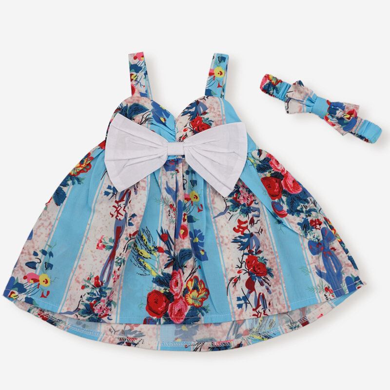 Φόρεμα 2 Τεμ Για Κορίτσια Με Φλοράλ Στάμπα Με Παπιγιόν Αμάνικο Casual Τιράντες Για 1-5 Χρόνια