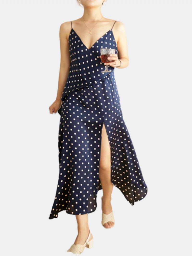 Φόρεμα Σιφόν Πουά Σπαγγέτι Με Λουράκια Plus Size Split