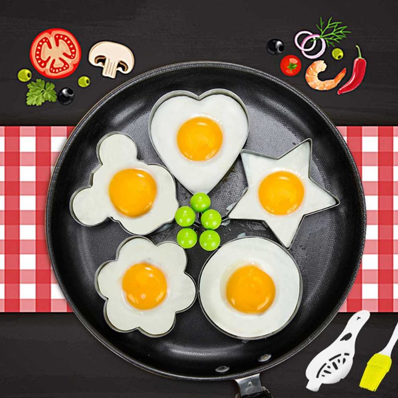 Καλούπι Για Τηγανητά Δαχτυλίδι Αυγών, Ειδικά Σχεδιασμένο Για Το Μαγείρεμα Αυγών Ή Τηγανιτών, Κατασκευασμένο Για Να Φτιάξετε Ένα Απλό Diy Μόνοι Σας, Κατασκευασμένο Από Ανοξείδωτο Χάλυβα Υψηλής Ποιότητας Τροφίμων + Λαβή Pp, Με Πέντε Διαφορετικά Είδη Σχήματος, Ώστε Να Μπορείτε Να Κάνετε Diy Αυγά Και Τηγανίτες Διαφορετικού Σχήματος.