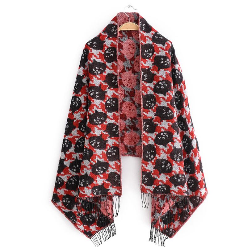 Φουλάρι Με Μοτίβο Γάτας Και Στις Δύο Πλευρές Με Καρό Μαντήλι