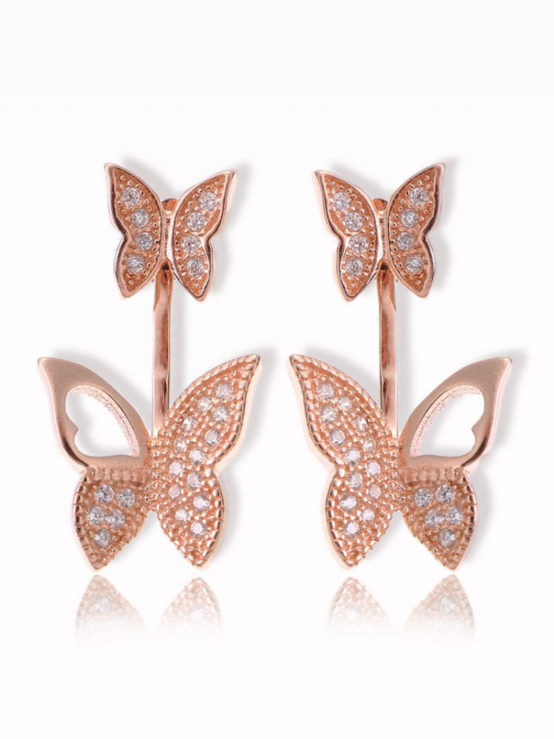Γλυκά Ασημένια 925 Ροζ Χρυσά Σκουλαρίκια Full Zirconia Butterfly Piercing Ear Jackets Για Γυναίκες