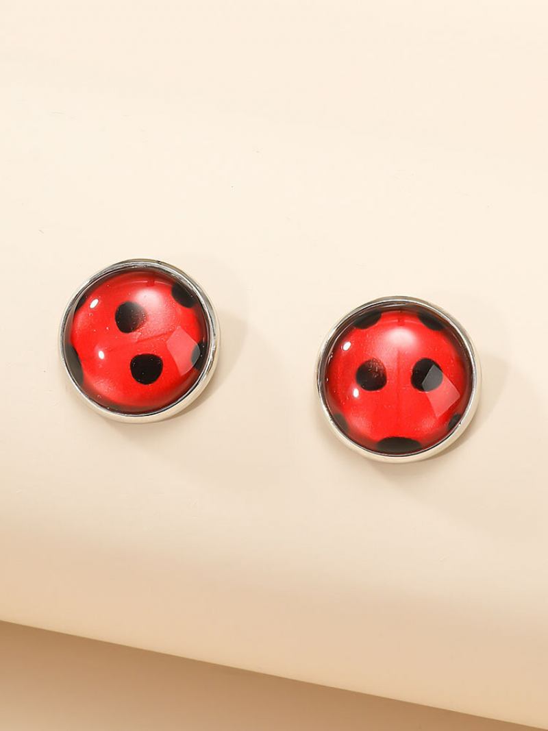 Γλυκό Κράμα Κόκκινο Επτά Σημείων Πασχαλίτσα Σκουλαρίκια Σε Γεωμετρικό Σχήμα