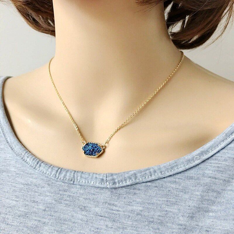 Γλυκό Πολύχρωμο Χρυσό Γεωμετρικό Κολιέ Από Πέτρα Druzy Αλυσίδα Κρεμαστό Τυρκουάζ Για Γυναίκες Δώρο