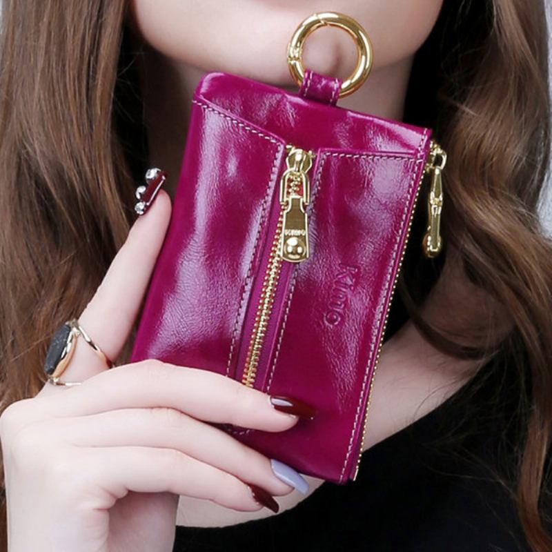 Γνήσιο Δερμάτινο Φερμουάρ Πολυλειτουργικό Τσαντάκι Για Κέρματα Για Μπρελόκ Αυτοκινήτου Για Γυναίκες
