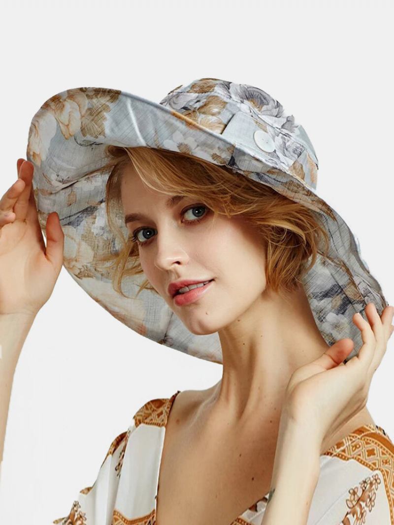 Γυναικεία Dacron Overlay Calico Print Button Decoration Big Brim Breathable Sunshade Αναδιπλούμενο Καπέλο Κουβά