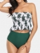 Γυναικεία Μπικίνι Βολάν Με Τροπικά Φύλλα Με Στάμπα Μπαντό Ψηλόμεση Μαγιό Παραλίας