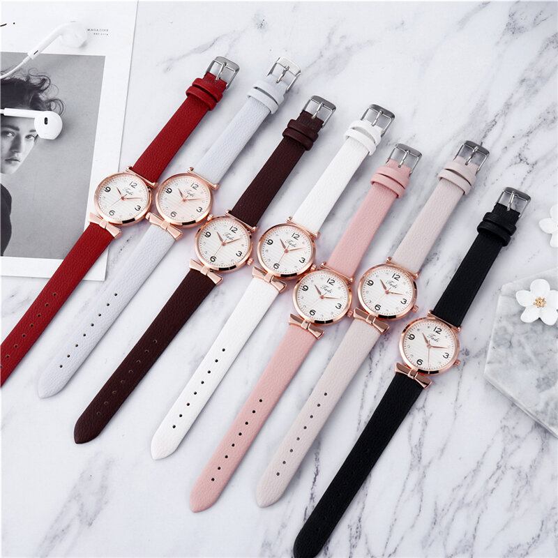 Γυναικεία Ρολόγια Leisure Sport Δερμάτινο Λουράκι Με Αραβικούς Αριθμούς Μεγάλο Ρολόι Χαλαζία Με Τρία Χέρια