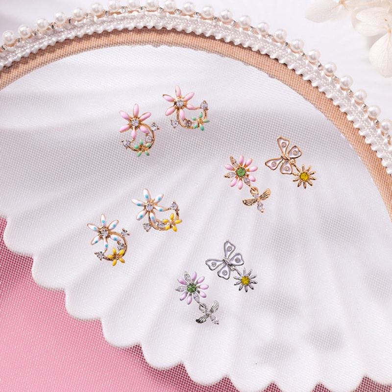 Γυναικεία Σκουλαρίκια Με Καρφιά Πεταλούδας Γλυκού Λουλούδι Αναλλεργικά Με Βελόνα Από Στρας