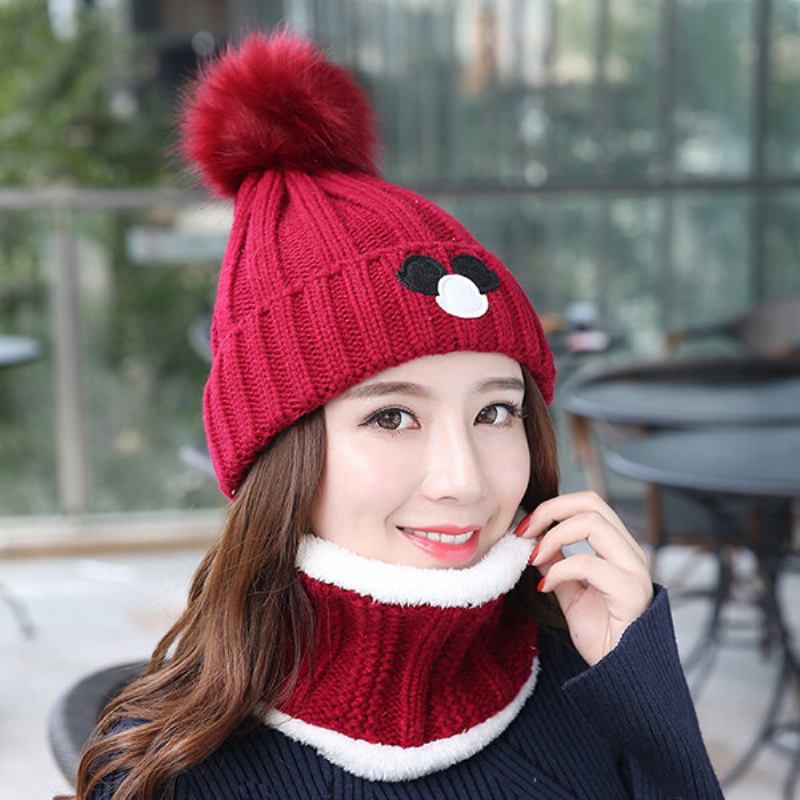Γυναικεία Χειμωνιάτικα Πλεκτά Κασκόλ Και Με Γιακά Λαιμό Με Εύκαμπτο Καπέλο Από Γούνα