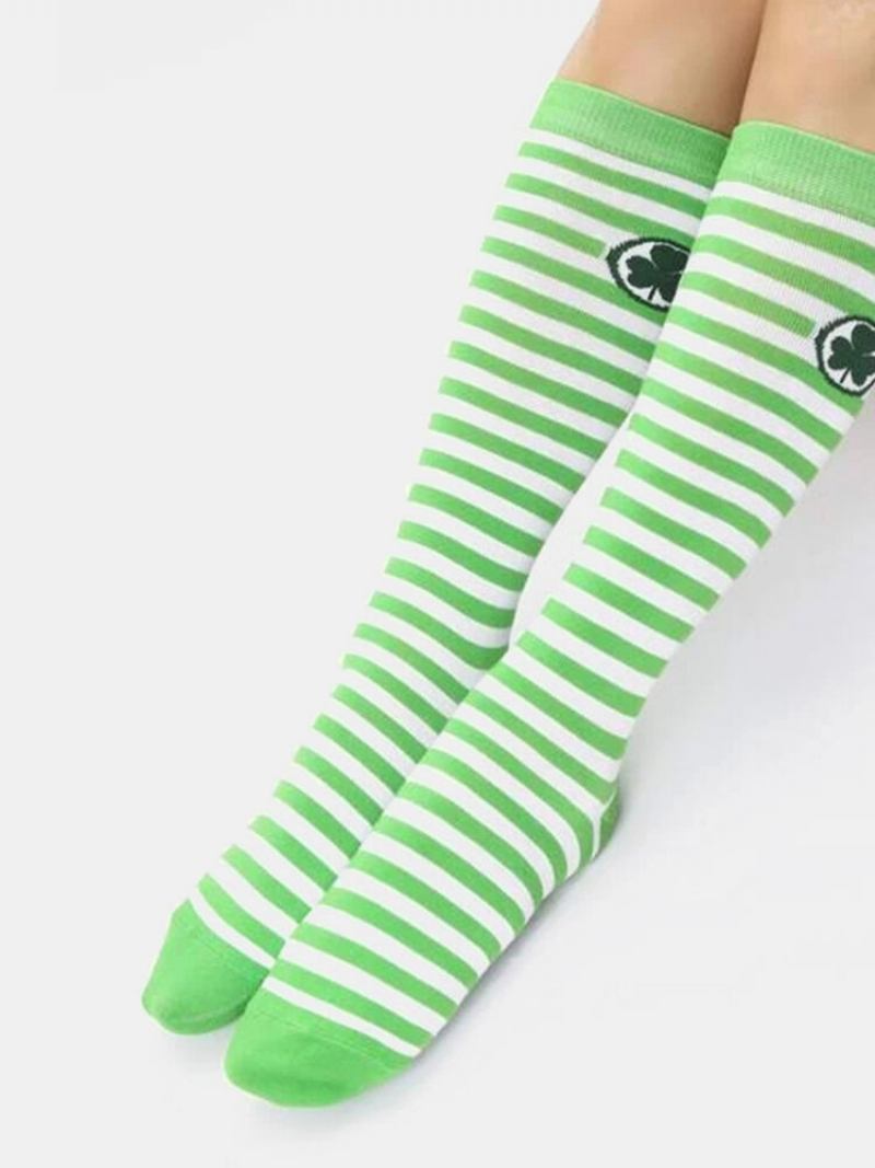 Γυναικείες Βαμβακερές Ρίγες Τριφύλλι Με Μοτίβο St. Patrick's Day Party Κάλτσες Εξωτερικής Μόδας Στο Γόνατο