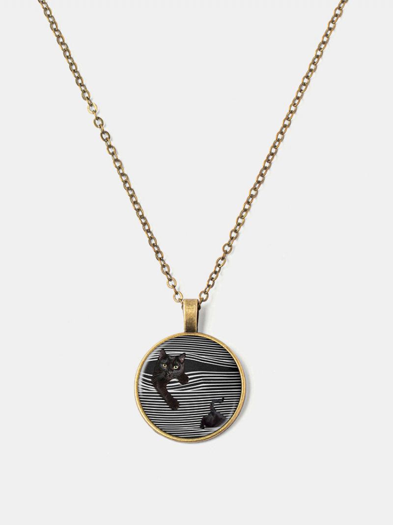 Γυναικείο Κολιέ Από Μεταλλικό Στρογγυλό Γυαλί