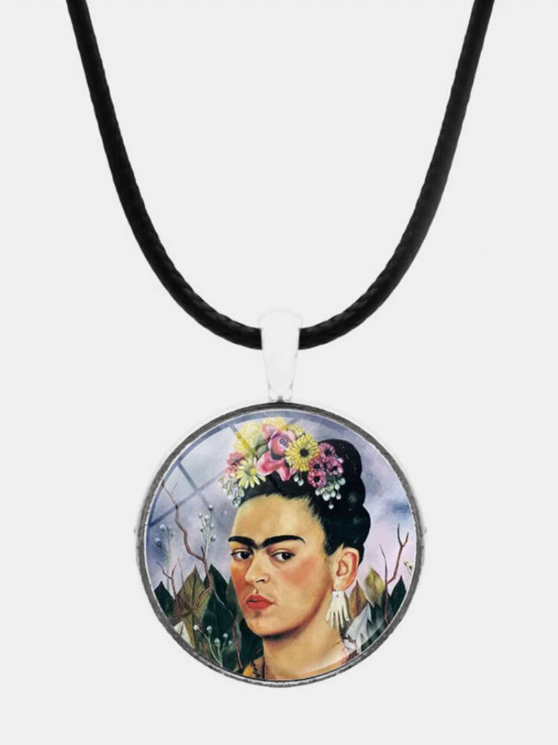 Γυναικείο Κολιέ Με Στάμπα Κινουμένων Σχεδίων Ανδρικό Με Ρυθμιζόμενο Με Λουλούδια Γυάλινο Κρεμαστό Δερμάτινο
