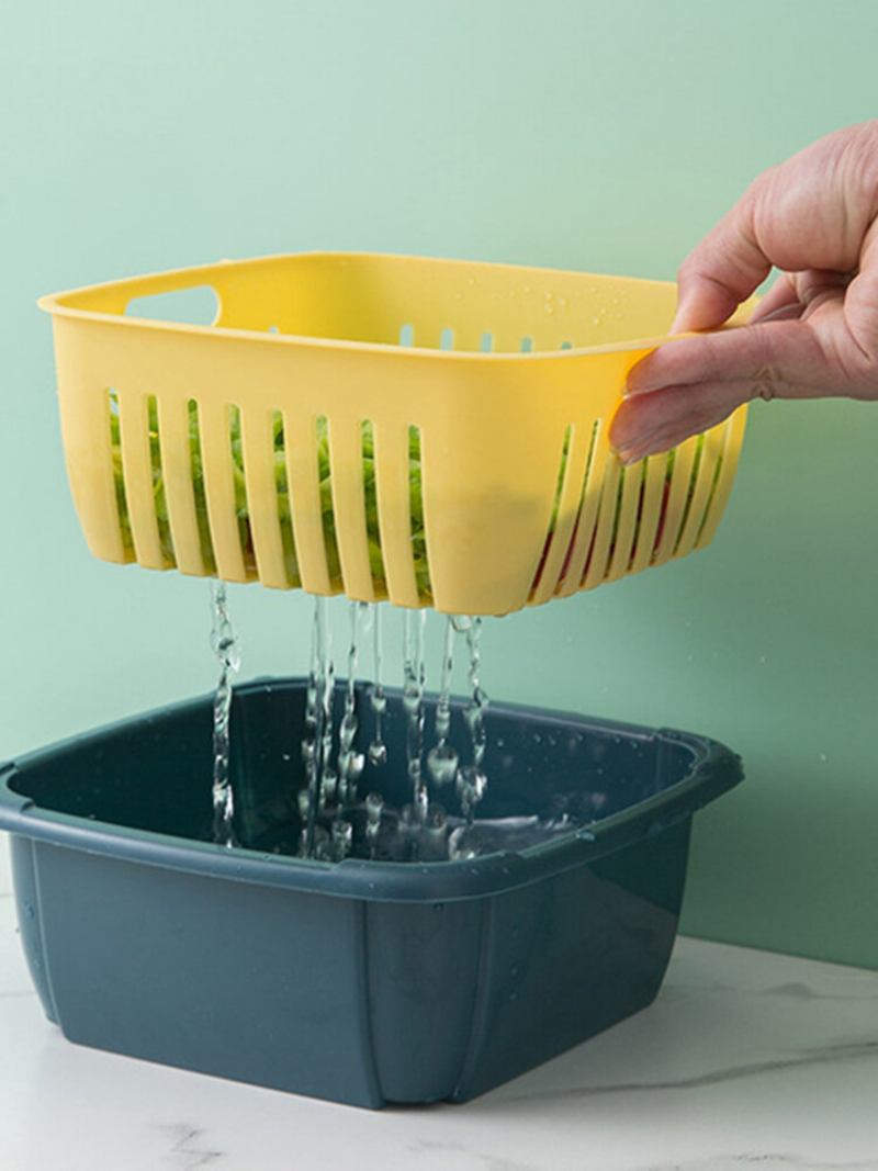 Καλάθι Αποστράγγισης Διπλών Στρώσεων Γρήγορη Αποστράγγιση Φρούτα Λαχανικά Δίσκος Κουζίνας Αποθήκευσης