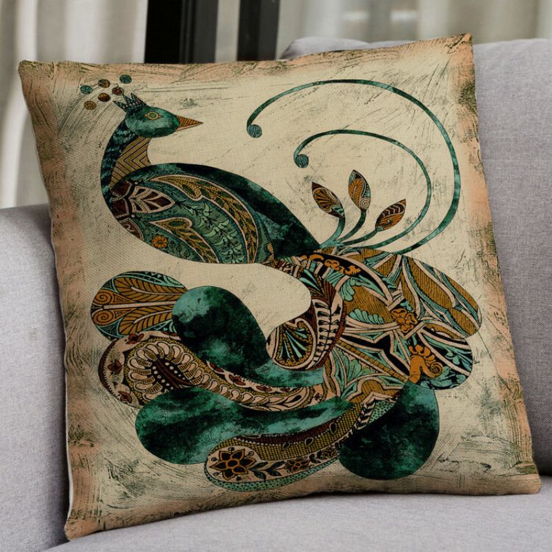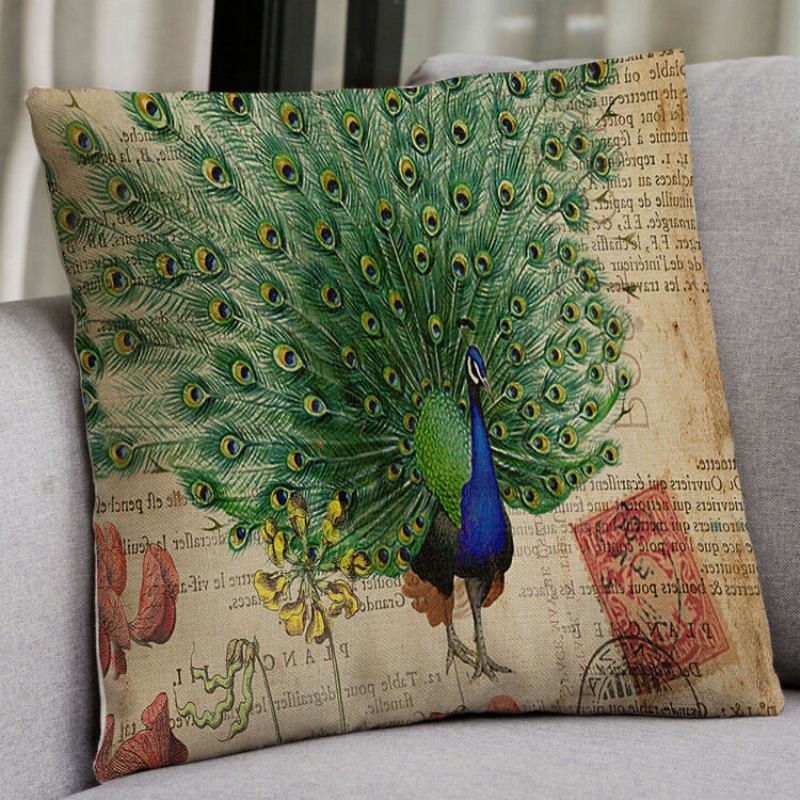 Κάλυμμα Μαξιλαριού Με Λινό Ριχτάρι Κινέζικου Στυλ Peacock Landscape Πλάτης Καναπέ Γραφείου Σπιτιού