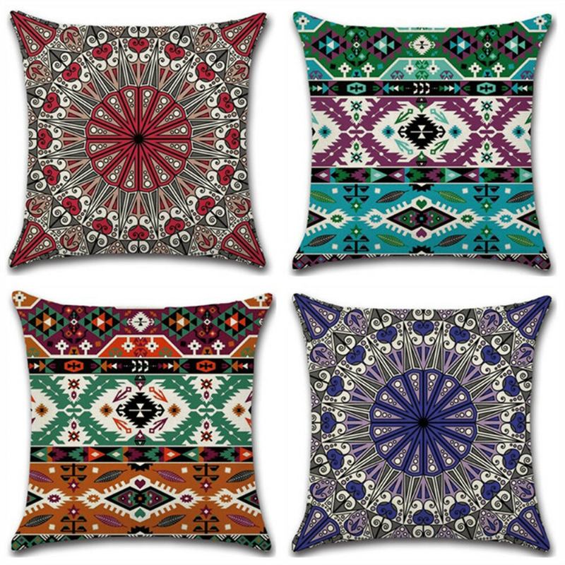 Κάλυμμα Μαξιλαριού Σπιτιού Από Λινό Βαμβάκι Mandala Indian Bohemian Decor Τετράγωνη Μαξιλαροθήκη