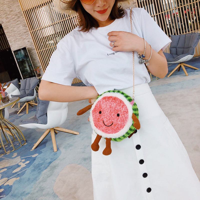 Καρπούζι Χαριτωμένο Κινούμενα Σχέδια Μικρό Στρογγυλό Anime Βελούδινο Κορίτσι Τσάντα Ώμου Messenger Θήκη Κινητού Τηλεφώνου Μαλακή Μίνι Για Κορίτσια