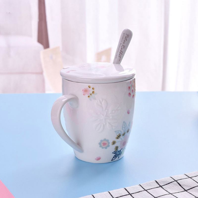 Κεραμική Κούπα Ανάγλυφη Ζωγραφική Με Κουτάλι Κάλυμμα Για Νερό Γραφείου Φλιτζάνι Καφέ Πορσελάνης