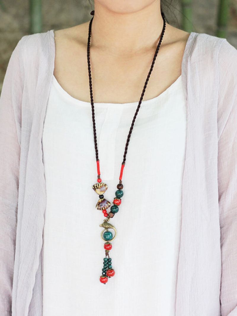 Κεραμικό Κράμα Χαλκού Κολιέ Μακρύ Πουλόβερ Με Αλυσίδα Άγριο Μενταγιόν