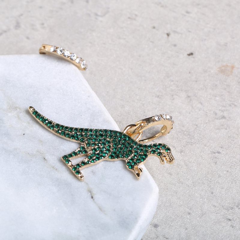 Κλασικά Χρυσά Πράσινα Στρας Dinosaur Dangle Σκουλαρίκια Μόδας Ασυμμετρία Για Γυναικεία Δώρα