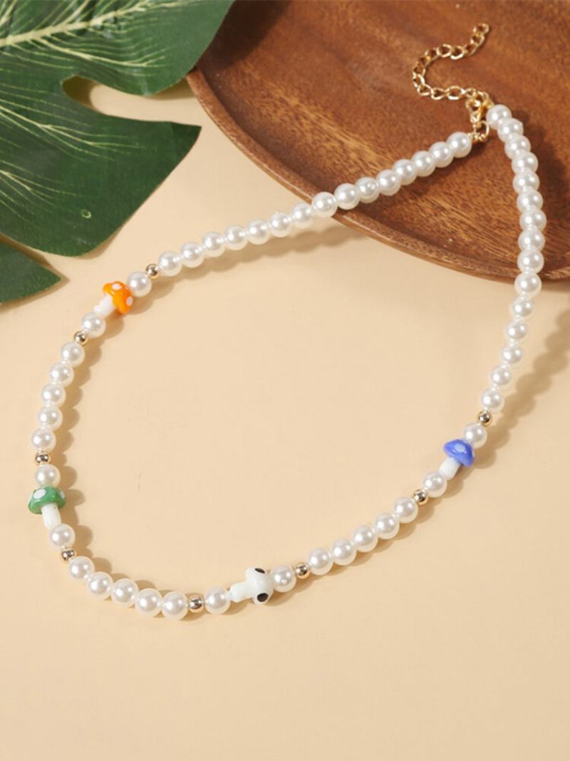 Κολιέ Bohemian Pearl Mushroom Με Ιδιοσυγκρασία Με Χάντρες