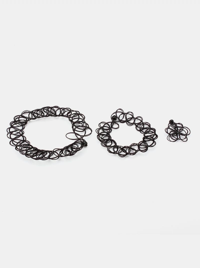 Κολιέ Βραχιόλι Με Μαύρο Μοτίβο Γιακά Βράχου Ελαστικό Πλαστικό Δαχτυλίδι