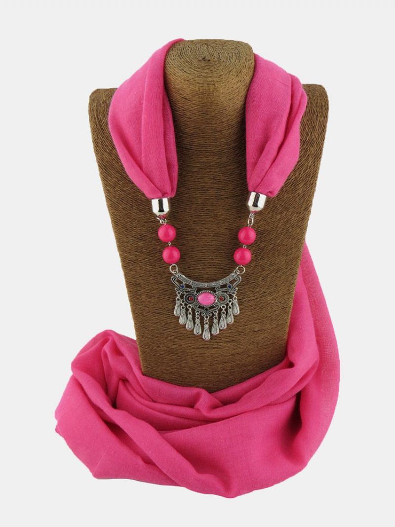 Κολιέ Με Φουλάρι Vintage Ethnic Με Φούντα Μονόχρωμο Κράμα Dacron