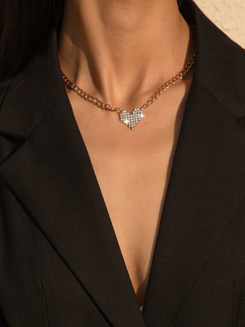 Κολιέ Με Κρεμαστό Με Καρδιά Ροδάκινο Με Διαμάντια Ιδιοσυγκρασία Μεταλλικό Με Στρας
