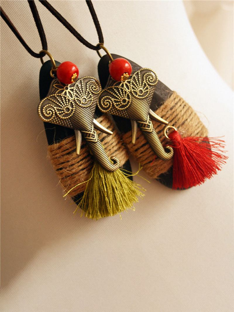 Κολιέ Με Μακρύ Πουλόβερ Από Ξύλινο Κράμα Vintage Ethnic Με Φούντα Ελέφαντα