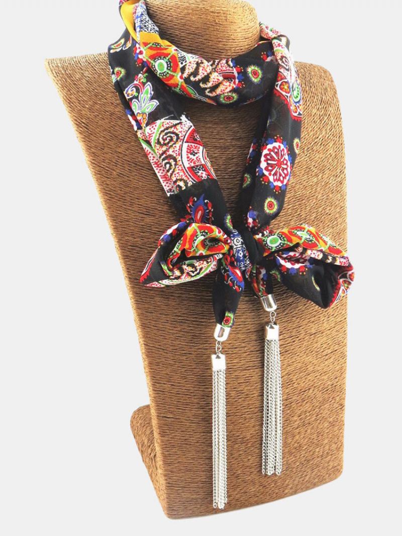 Κολιέ Με Μεταξωτό Φουλάρι Σε Σχήμα Έθνικ Απλές Φούντες