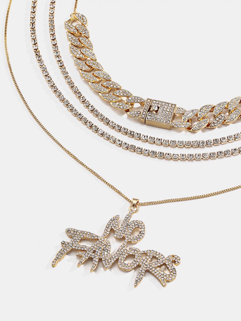 Κολιέ Με Μοντέρνο Κουβανέζικο Πολλαπλών Στρώσεων Μεταλλικό Με Στρας