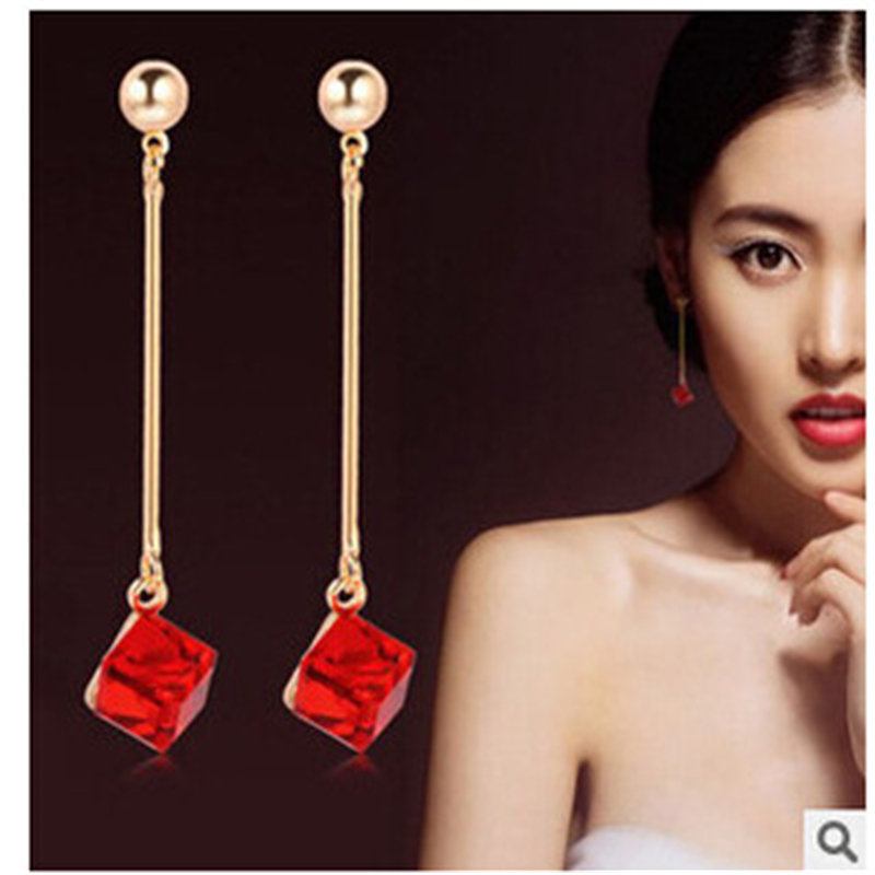 Κομψά Ear Drop Earrings Bar Σε Σχήμα Quare Water Cube Κρυστάλλινα Κρεμαστά Σκουλαρίκια Κοσμήματα Για Γυναίκες
